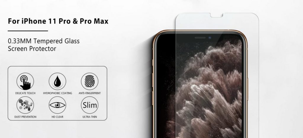 Usually, a glass film can have many characteristics. Some are common: first of all, they guarantee high protection and are often anti-scratch. One such an example is VMAX’s Apple iPhone 11 Pro Max 2.5D Round Edge Super Clear Tempered Glass Screen Protector. It features ultra-thin-0.33mm thickness, with up to 9H hardness, providing max protection, which can ease the impact force and avoid screen damage from a sharp object.