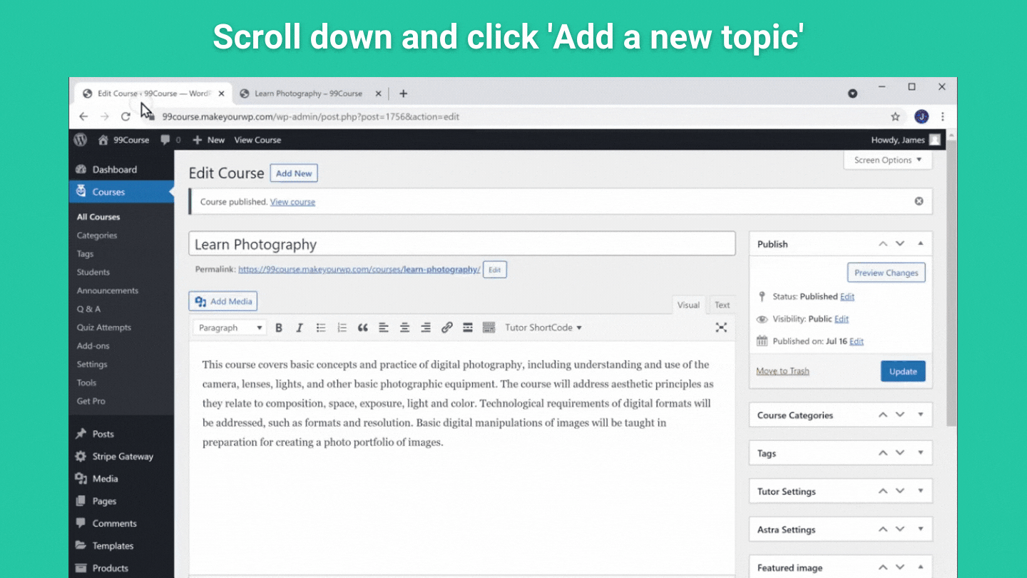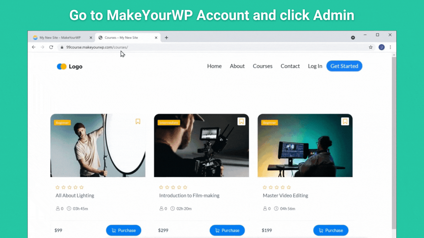 Go to ‘makeyourwp.com’ and launch your online course website today!