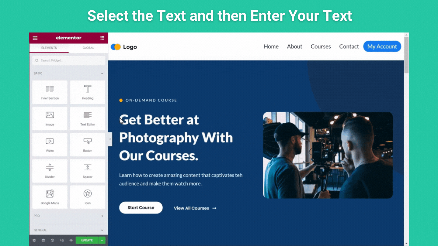To change a text, all you need to do is select it and then replace it with the text you want,