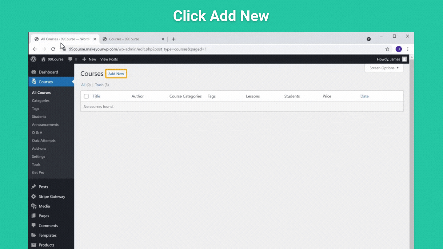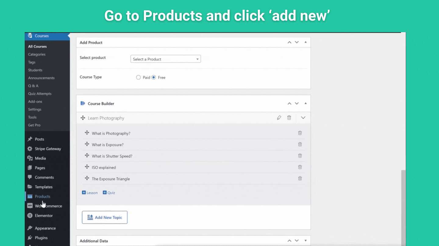 Go to ‘products’ on your WordPress admin page and click ‘Add New’