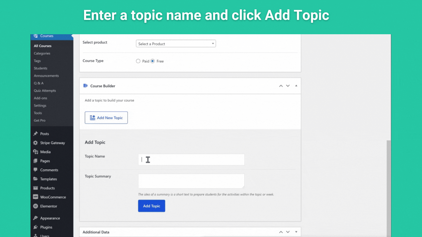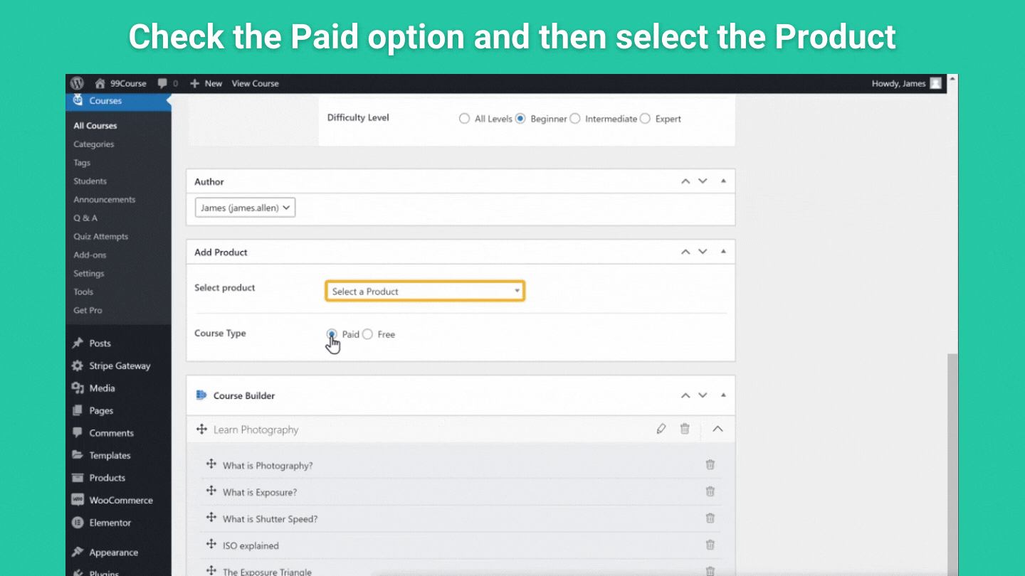 Now, if you scroll down, you can see that the course type is set to ‘Free’.