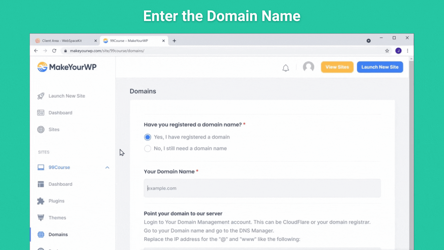 Now, this will be ‘example.makeyourwp.com’ as it’s a temporary domain.