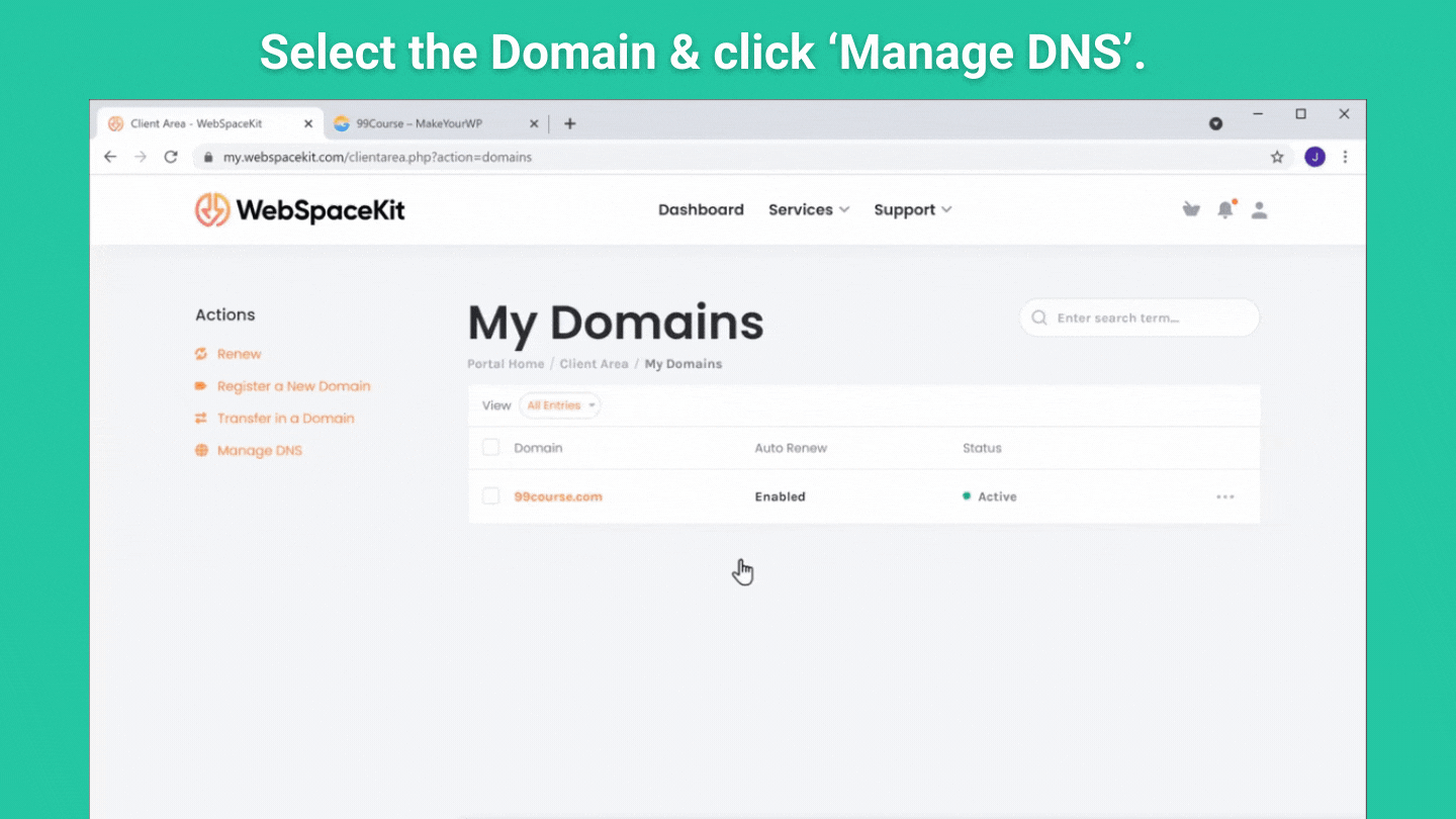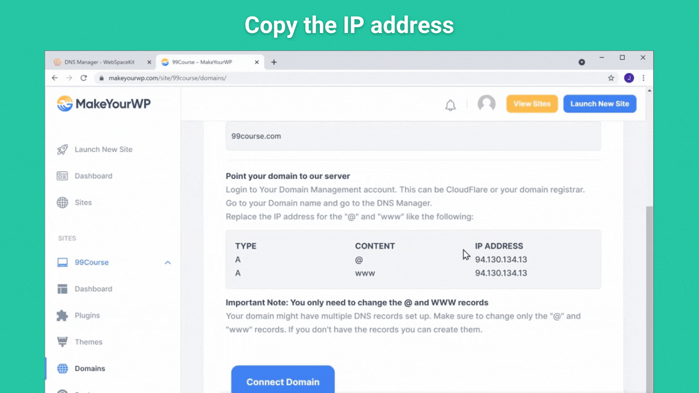 Go to the MakeYourWP dashboard and go to ‘domains’