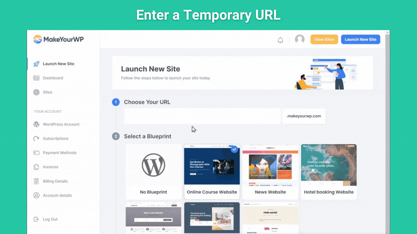 MakeYourWP is one of the best platforms out there that lets you launch your WordPress site with just one click.