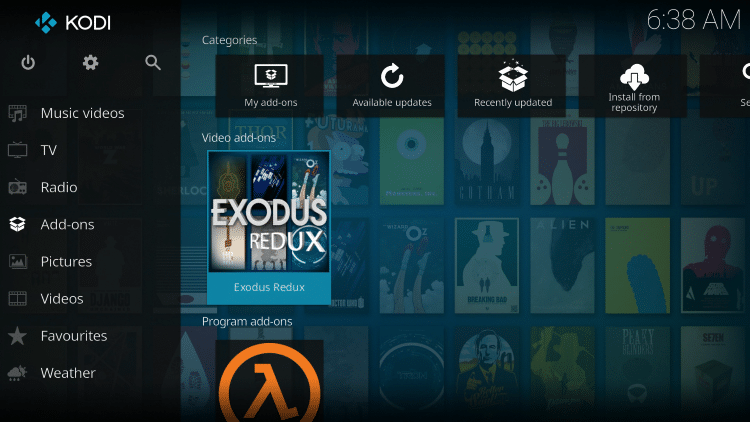 Note: If Exodus Redux doesn’t work properly after installing, try powering off your streaming device and power back on.